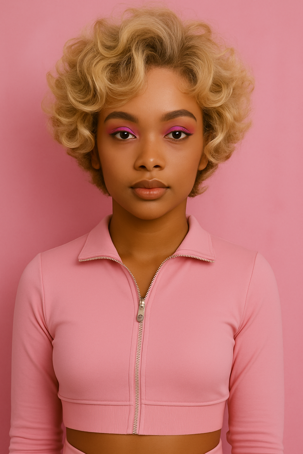 Keysha en Tiramisu séduit par sa coupe courte et pleine de volume, sublimée par des boucles souples et aériennes.